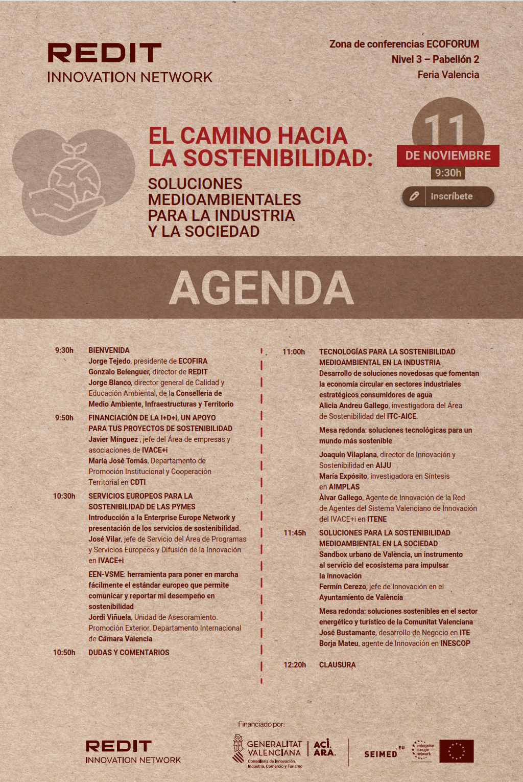Desde REDIT hemos organizado esta jornada en el marco de la Feria Ecofira que tendrá lugar el día 11 de noviembre por la mañana en la zona de conferencias ECOFORUM para que descubras soluciones de los centros tecnológicos dirigidas a mejorar procesos industriales y a solucionar retos de las ciudades. Además, podrás conocer diferentes líneas de financiación para estos proyectos. ¡Te esperamos!